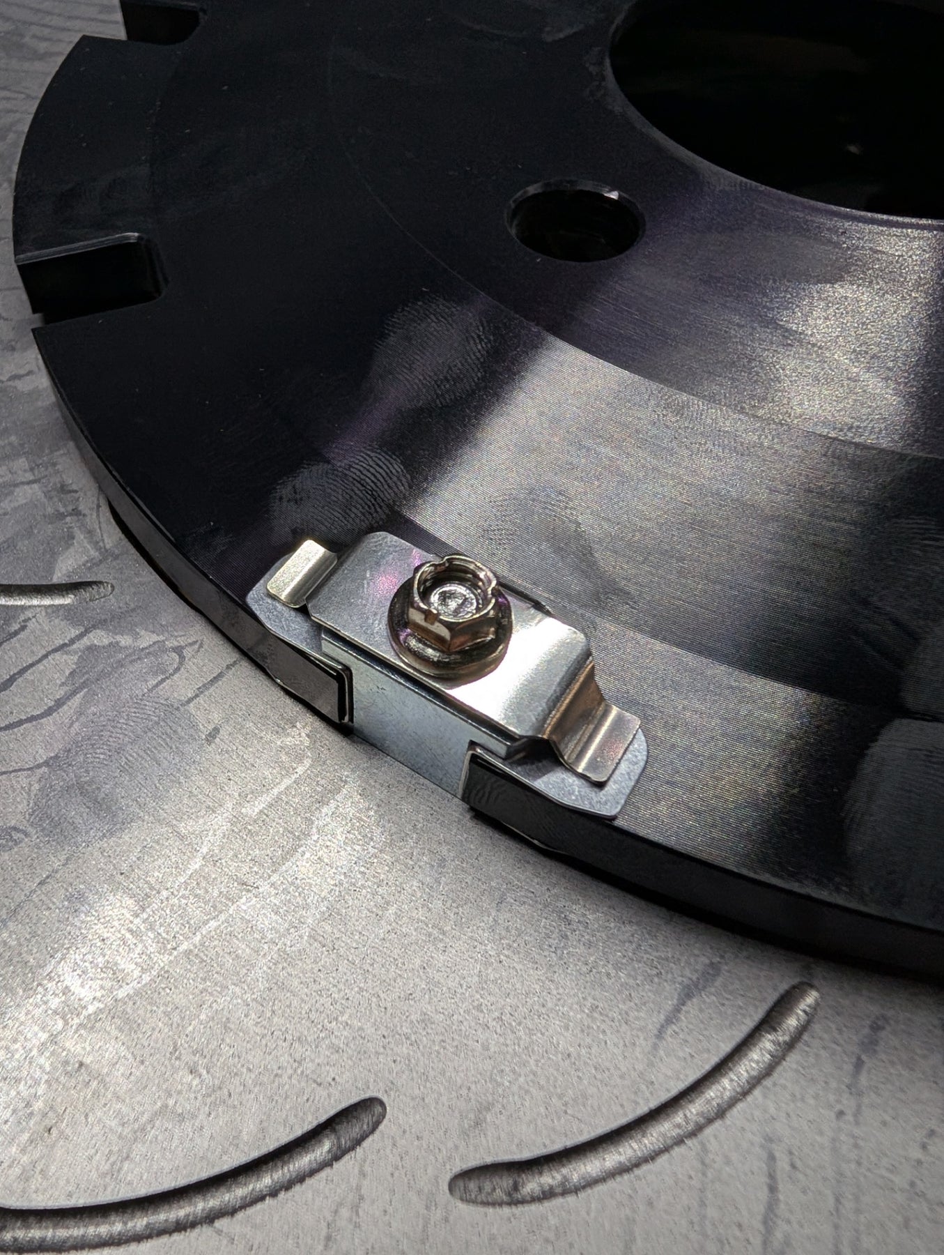 Moving to a two-piece design brings clear functional advantages over the original one-piece rear discs. Each assembly is approximately 2.1 kg lighter per side, significantly reducing unsprung mass. This improves suspension response and ride control, while also reducing thermal transfer into the hub and wheel bearing. Under repeated heavy braking, the floating interface allows the disc ring to expand correctly, helping to maintain stability and reduce the risk of distortion.