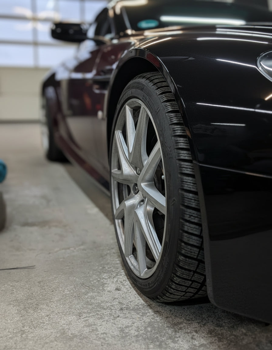 Die Bilder zeigen einen 2009er Vantage V8, der mit unserem verstellbaren Bilstein-Fahrwerk und 11-mm-Distanzscheiben vorne und hinten um 15 mm tiefergelegt wurde.